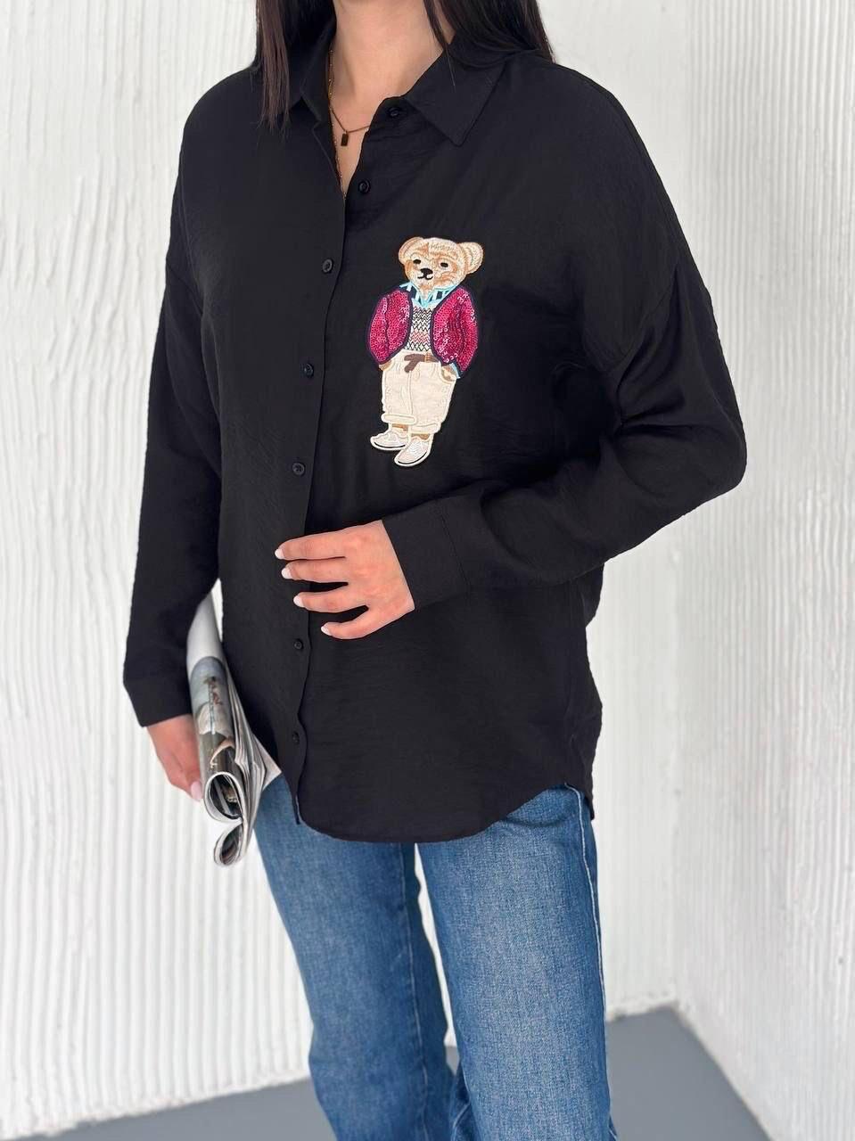 Bu sevimli ayıcık işlemeli gömlek, hem şirin hem de rahat bir görünüm sunar. Yumuşak dokusuyla gün boyu konfor sağlarken, ayıcık detaylarıyla da dikkat çeker. Kombinlerinizi tamamlamak için ideal bir seçenektir. Stilinize eğlenceli bir dokunuş katmak istiyorsanız, bu gömleği tercih edebilirsiniz.