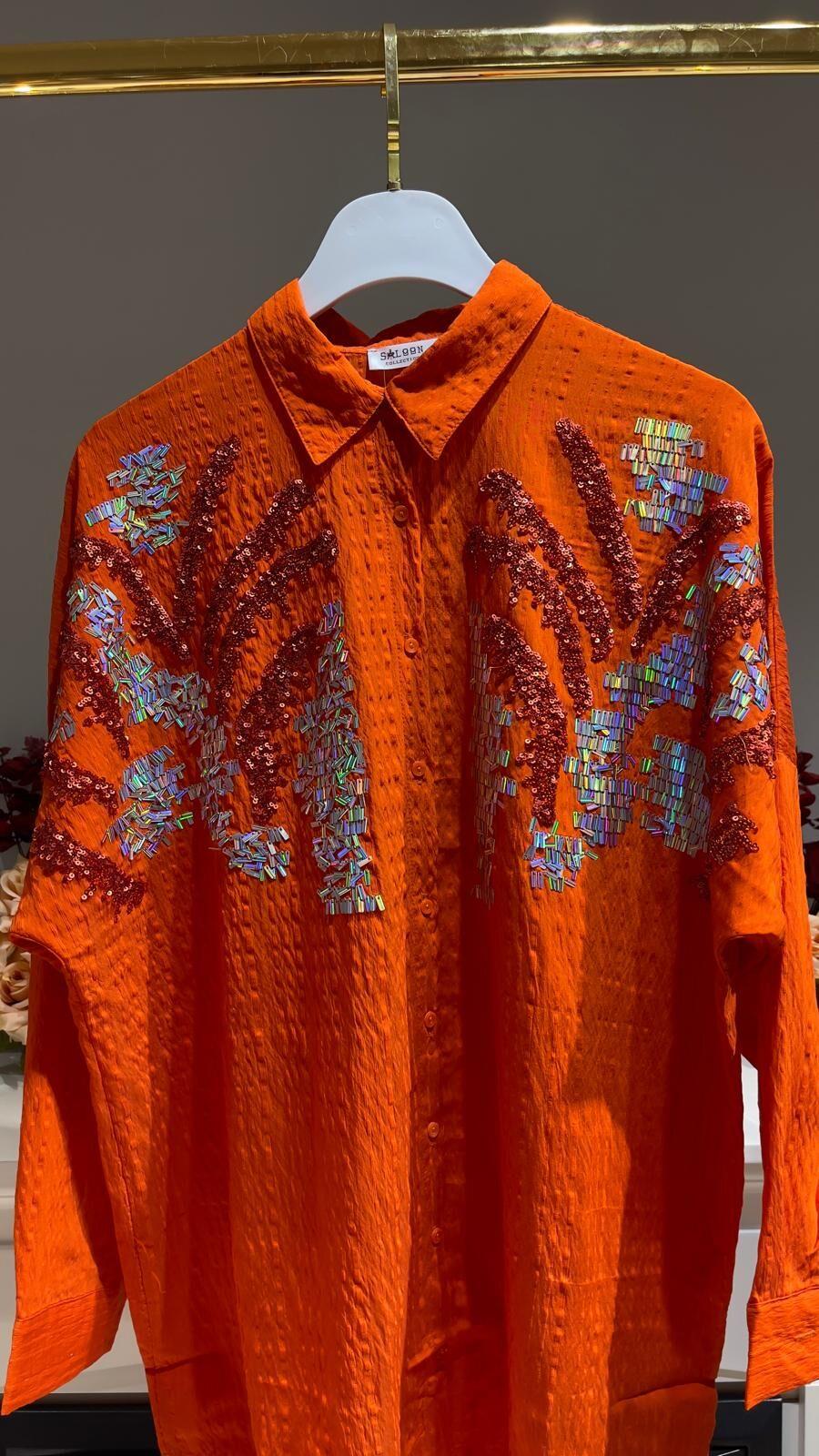 Bu kesik boncuk ve payet işlemeli oversize gömlek, şıklık ve rahatlığı bir arada sunuyor. Yüksek kaliteli kumaşı ve detaylarıyla dikkat çeken bu gömlek, her mevsimde kullanabileceğiniz şık bir seçenek. Oversize kesimiyle vücudu saran rahat bir kullanım sunarken, boncuk ve payet işlemeleriyle de dikkat çekici bir görünüm sunar. Gardırobunuzun vazgeçilmezi olmaya aday!