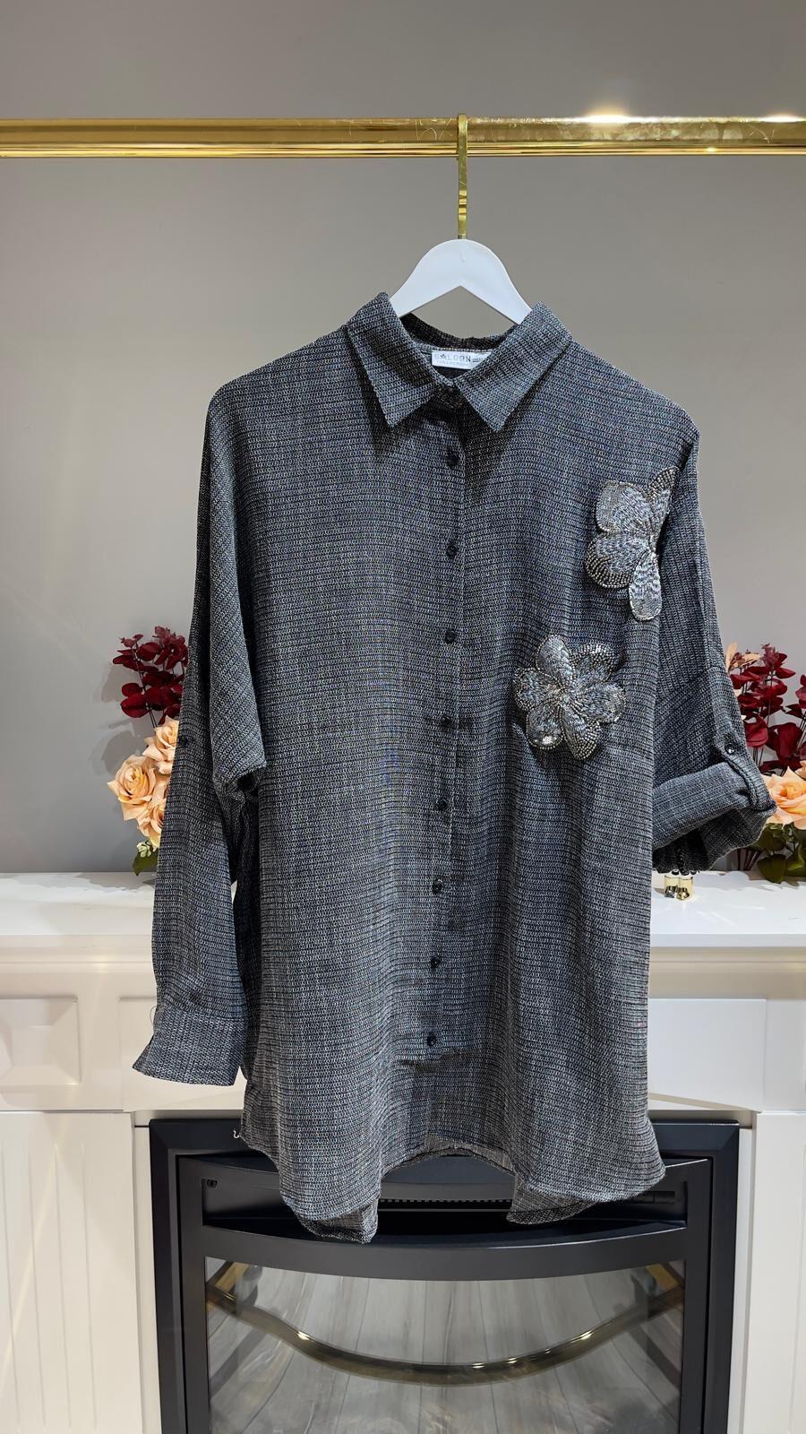 Bu poliviskon oversize gömlek, şıklığı ve rahatlığı bir arada sunuyor. Boncuk ve payet işlemeleriyle göz alıcı bir görünüm kazanan bu bayan gömlek, her türlü kombinle harika uyum sağlıyor. Gardırobunuzun favori parçası olmaya aday!