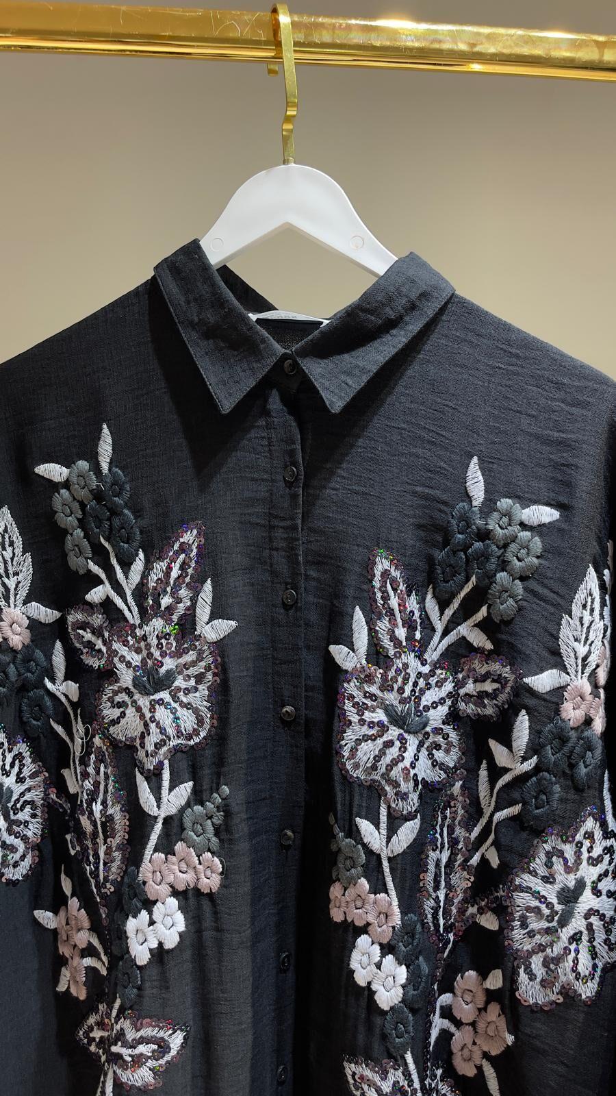 Bu aerobin kumaş nakışlı payetli  gömlek, hem şık hem de rahat bir seçenek sunuyor. Pul detaylarıyla dikkat çeken bu gömlek, her tarza uyum sağlayacak şekilde tasarlanmıştır. Yüksek kaliteli kumaşı ve özel detayları ile herhangi bir şıklık için mükemmel bir seçimdir.
