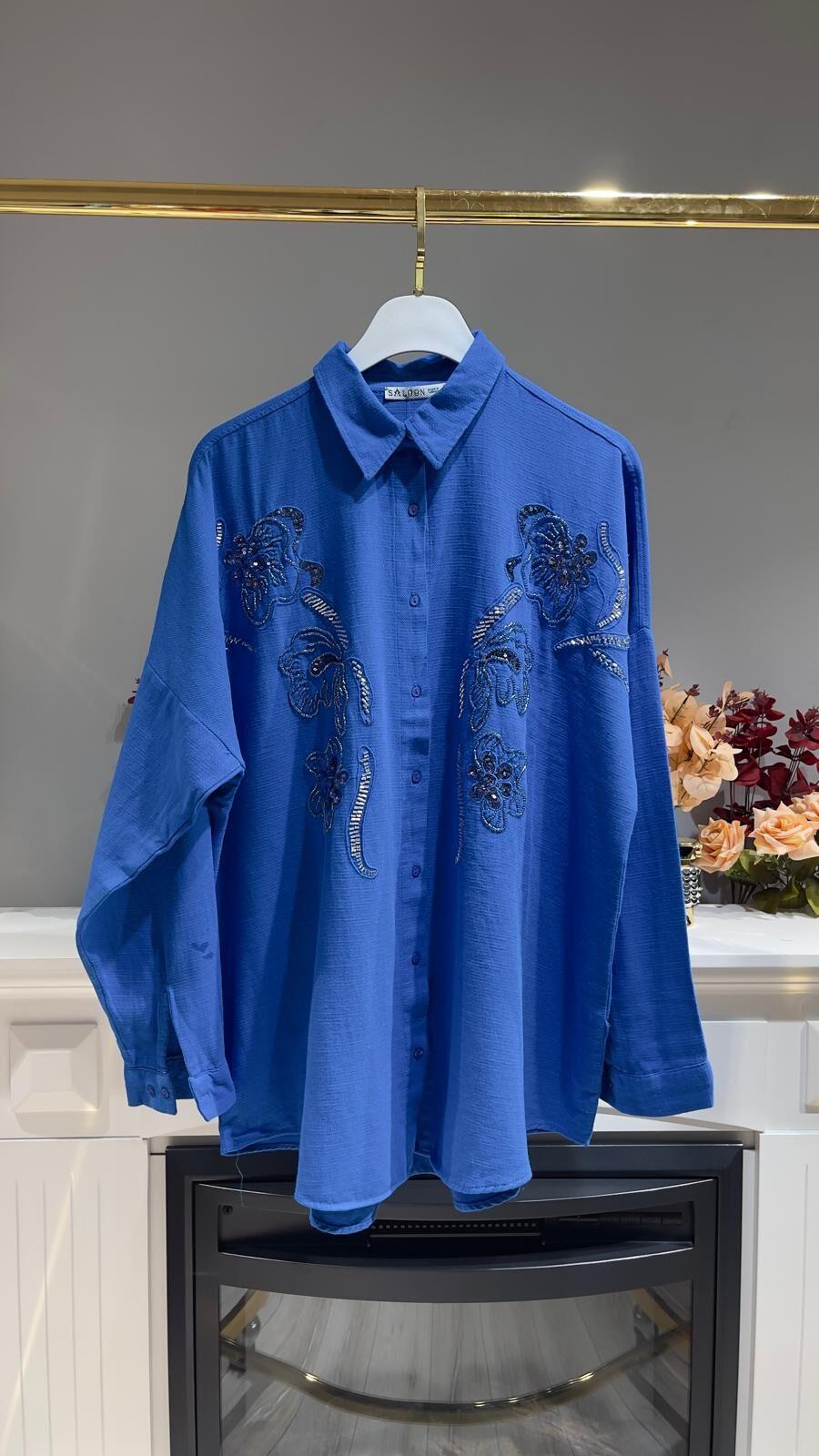 Keten gömlekleri sevenler için koyu mavi boncuk ve payet işlemeli keten gömlek, zarif ve şık bir seçenek sunuyor. Ketenin doğal ve hafif yapısı ile rahatlıkla kullanabileceğiniz bu gömlek, özel davetlerde veya günlük hayatta tarzınızı yansıtmanızı sağlar. Gömleğin zarif detayları, şıklığına şıklık katarken, koyu mavinin asaleti de göz alıcı bir kombin sunar.