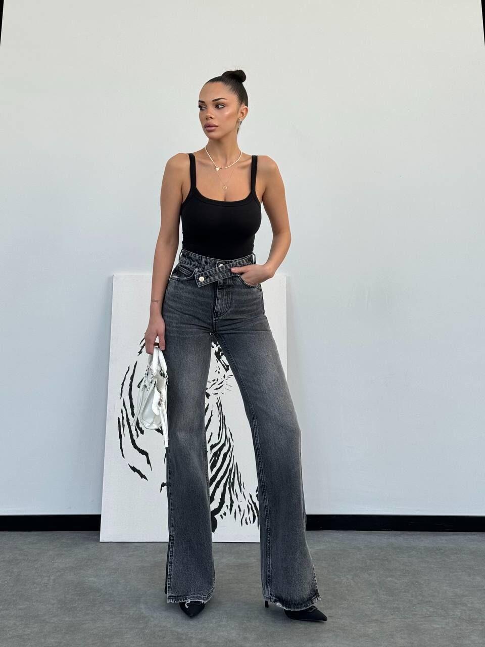 Kemer Detay Paça Yırtmaçlı Geniş Paça Jeans