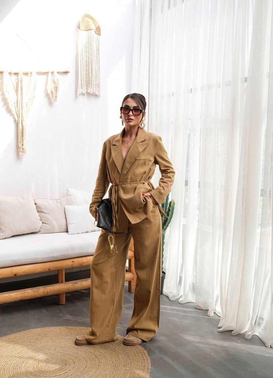 Bu muhteşem keten takım, şıklığı ve rahatlığı bir araya getiriyor. Keten pantolon, ceket ve bağlama ile tamamlanan bu takım, özel günlerde ve iş toplantılarında mükemmel bir seçenek. Klasik tasarımıyla dikkat çekerken, konforunu da hiçbir zaman göz ardı etmiyor. Tarzınızı yansıtmak ve kendinizi özgün hissetmek istiyorsanız, bu takım tam size göre.