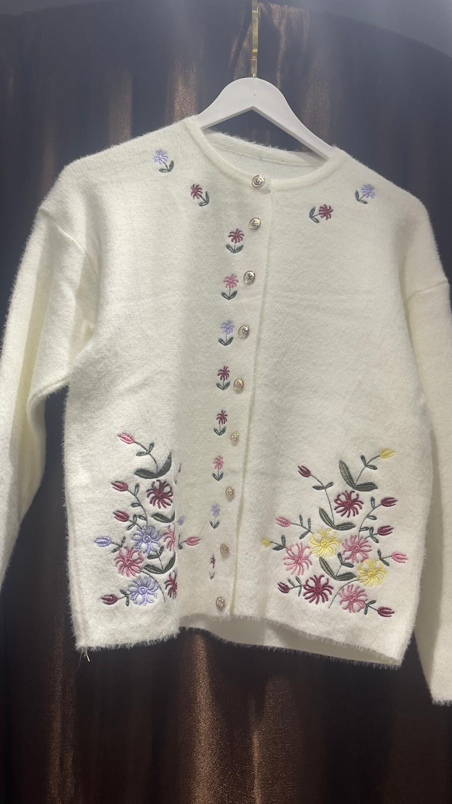 Bu muhteşem nakışlı triko hırka, sıcak tutacak ve zarif bir görünüm sağlayacak. Yumuşak triko kumaşıyla rahatlık sunarken, zarif nakış detaylarıyla da dikkatleri üzerinize çekecek. Soğuk havalarda stilinizi tamamlamak için mükemmel bir seçenek.