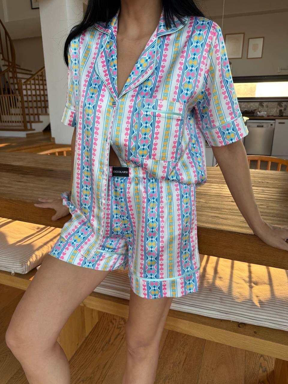 Bu ipek saten kalp desenli renkli , şortlu lastik tokalı şort takımı, rahat ve şık bir görünüm sunar. İnce dokusu ve esnek yapısıyla gün boyu konfor sağlar. Şık tasarımıyla her türlü kombinle uyum sağlar. Yaz aylarında tercih edebileceğiniz hafif ve şık bir seçenektir.