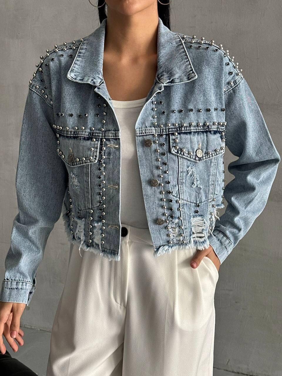 Tabii ki! İşte harika bir bahar gardırobunun vazgeçilmezi olan taşlı kot ceket. Bu ceket, şık tasarımı ve dayanıklı kumaşıyla dikkat çekiyor. Hem günlük giyimde hem de özel günlerde rahatlıkla kullanabileceğiniz bu ceket, tarzınıza şıklık katacak. Gömlek, tişört veya elbiseyle kombinleyerek farklı stiller yaratabilirsiniz. Siz de bu dikkat çekici taşlı kot ceketi hemen keşfedin!