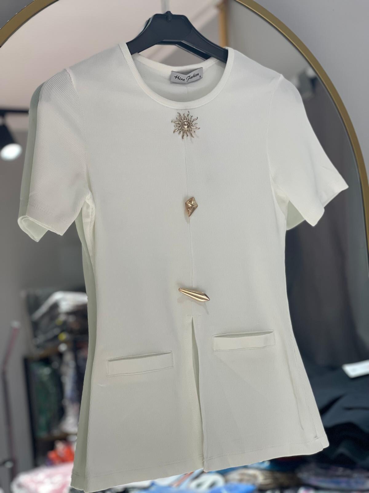 Bu triko gold düğmeli bluz, şık ve rahat bir tarz sunar. İnce triko kumaşıyla hem yaz hem de ilkbahar aylarında tercih edebilirsiniz. Altın rengi düğmeleri, bluza şık bir detay katarken, yumuşak dokusuyla da konfor sunar. Günlük kullanımdan özel davetlere kadar birçok farklı kombinle uyum sağlayabilir.
