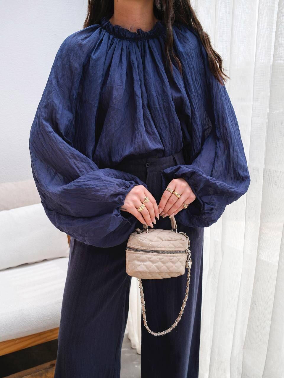 Bu tül bluz, feminen bir tarzı modern bir dokunuşla birleştiriyor. Büzgülü yaka ve lastikli balon kol detayları, dikkat çekici bir görünüm sunarken, hafif ve şık bir tasarıma sahiptir. Herhangi bir özel gün veya günlük kombinler için mükemmel bir seçenektir.